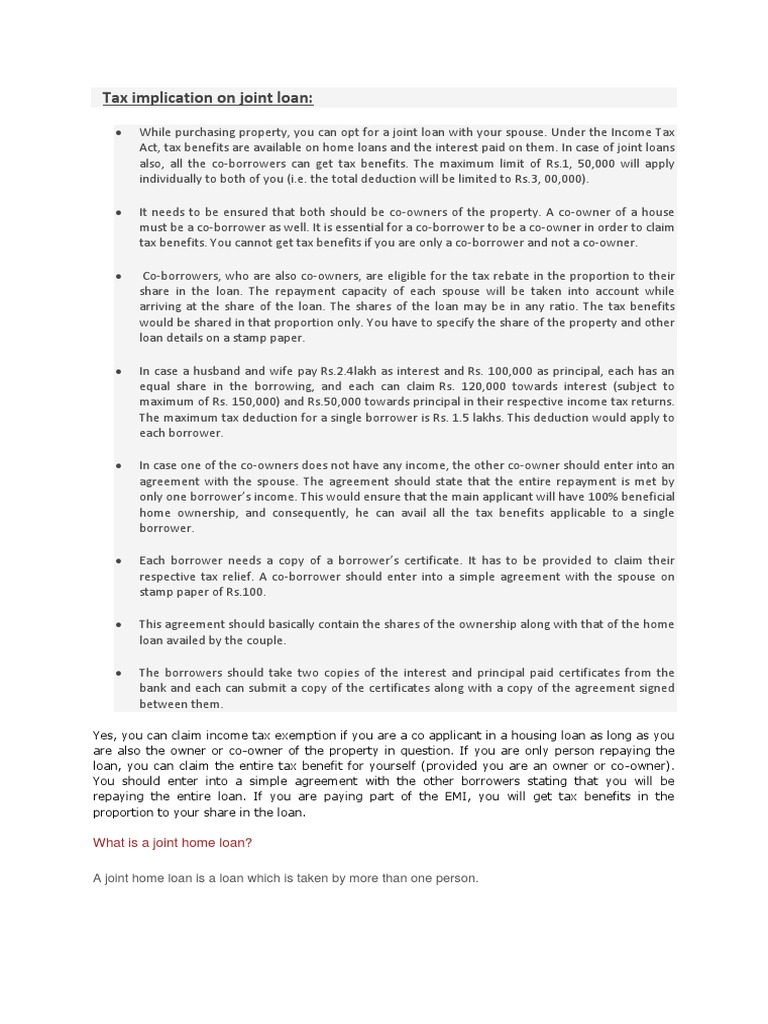 Joint Home Loan PDF Loans Mortgage Loan